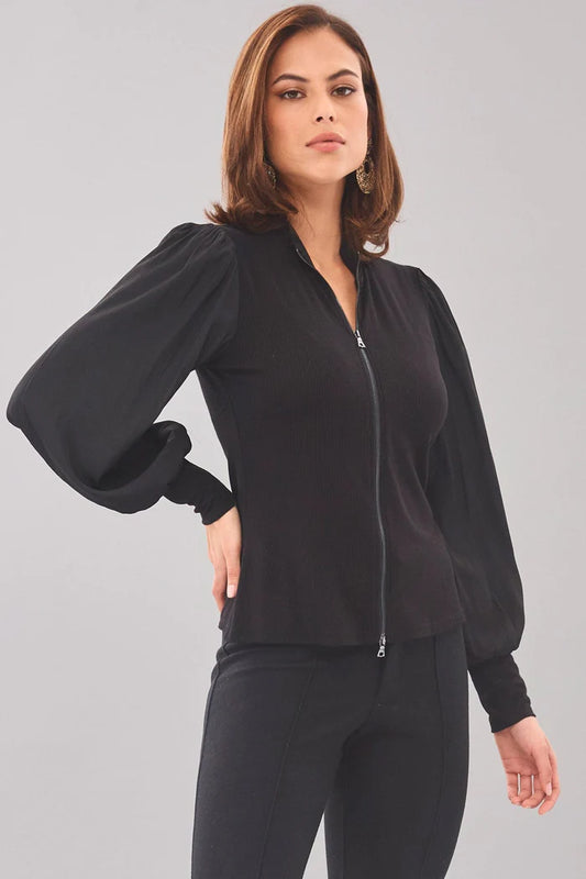 Balloon Sleeve Zip Front Top