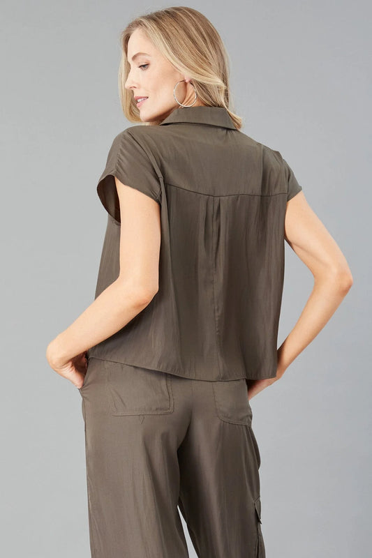 Satin Button Front Shirt