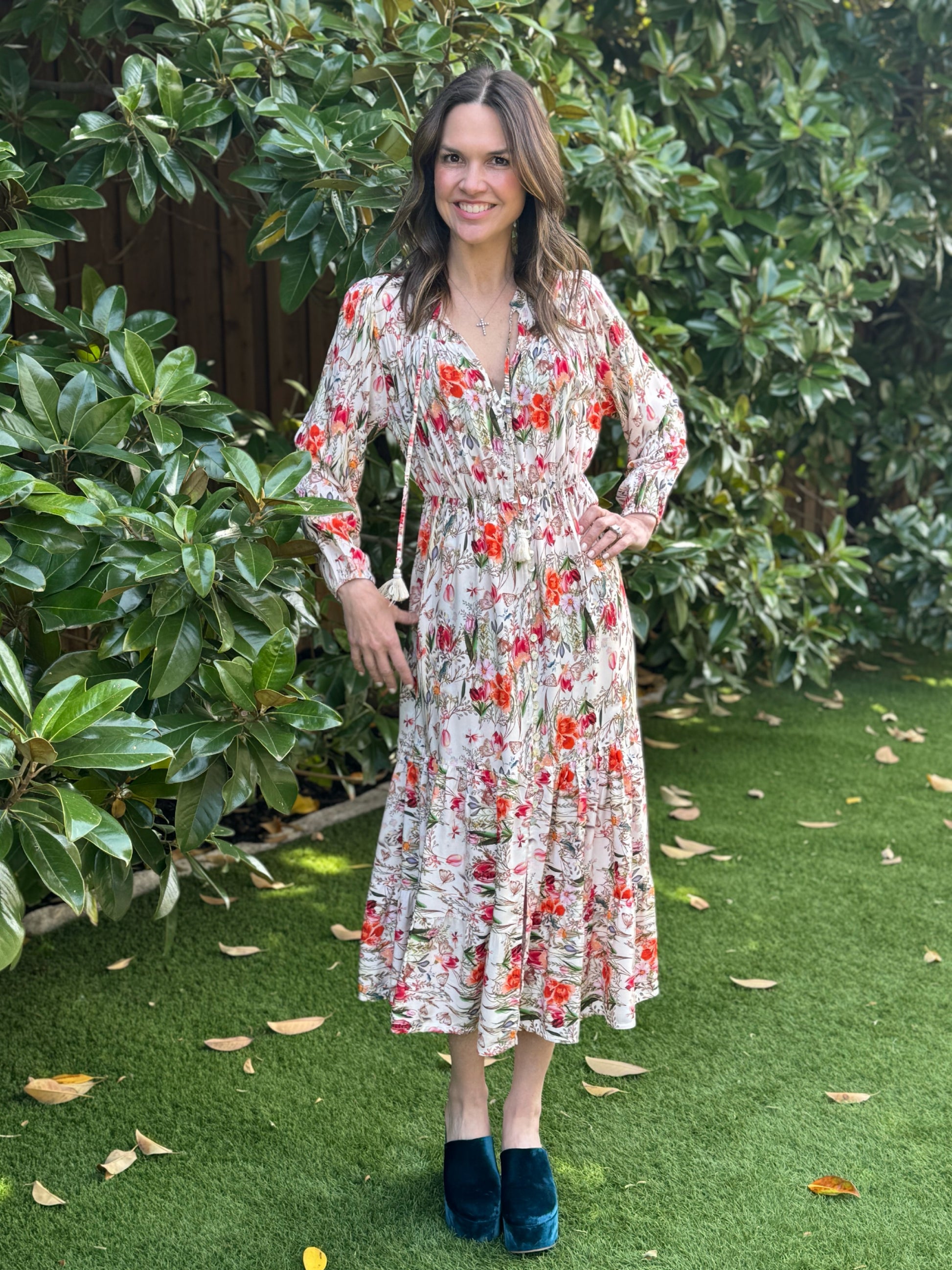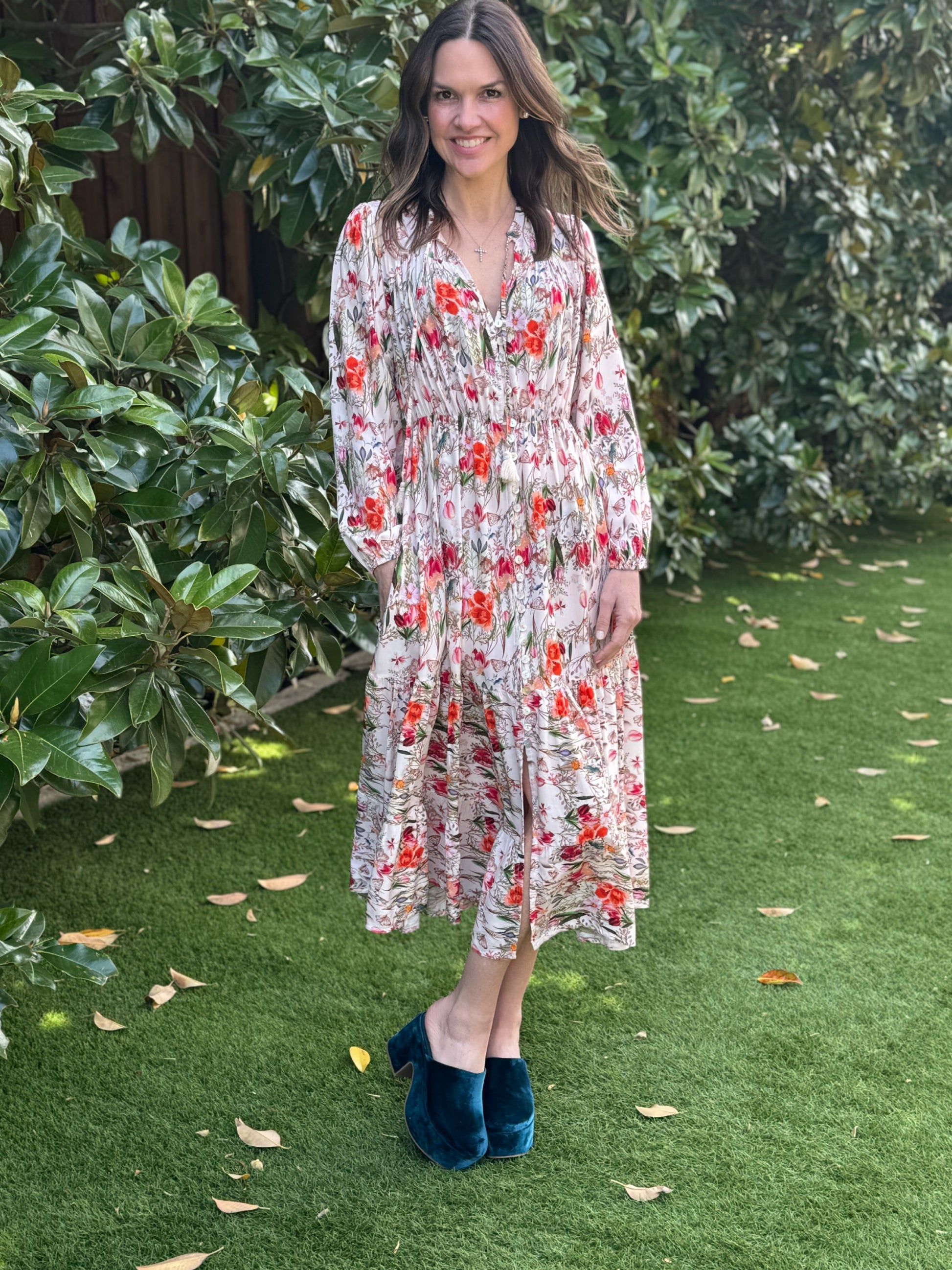 This fabulous floral print has button front with a cinched waist ready to enhance any figure. The sleeves are light and flowy. The super thin fabric will make you feel cool on the hottest of summer days.