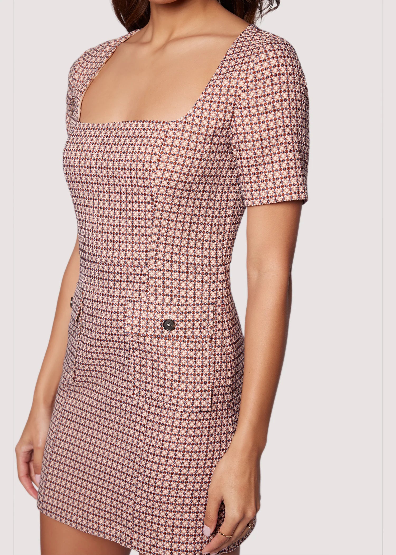 Crafted to perfection, the Sara Mini Dress combines beauty with functionality, making it an ideal choice for various occasions. The square neckline adds a touch of modern sophistication, with square pockets and an invisible zipper ensuring a seamless flow of fabric and maintaining the dress's sleek lines.