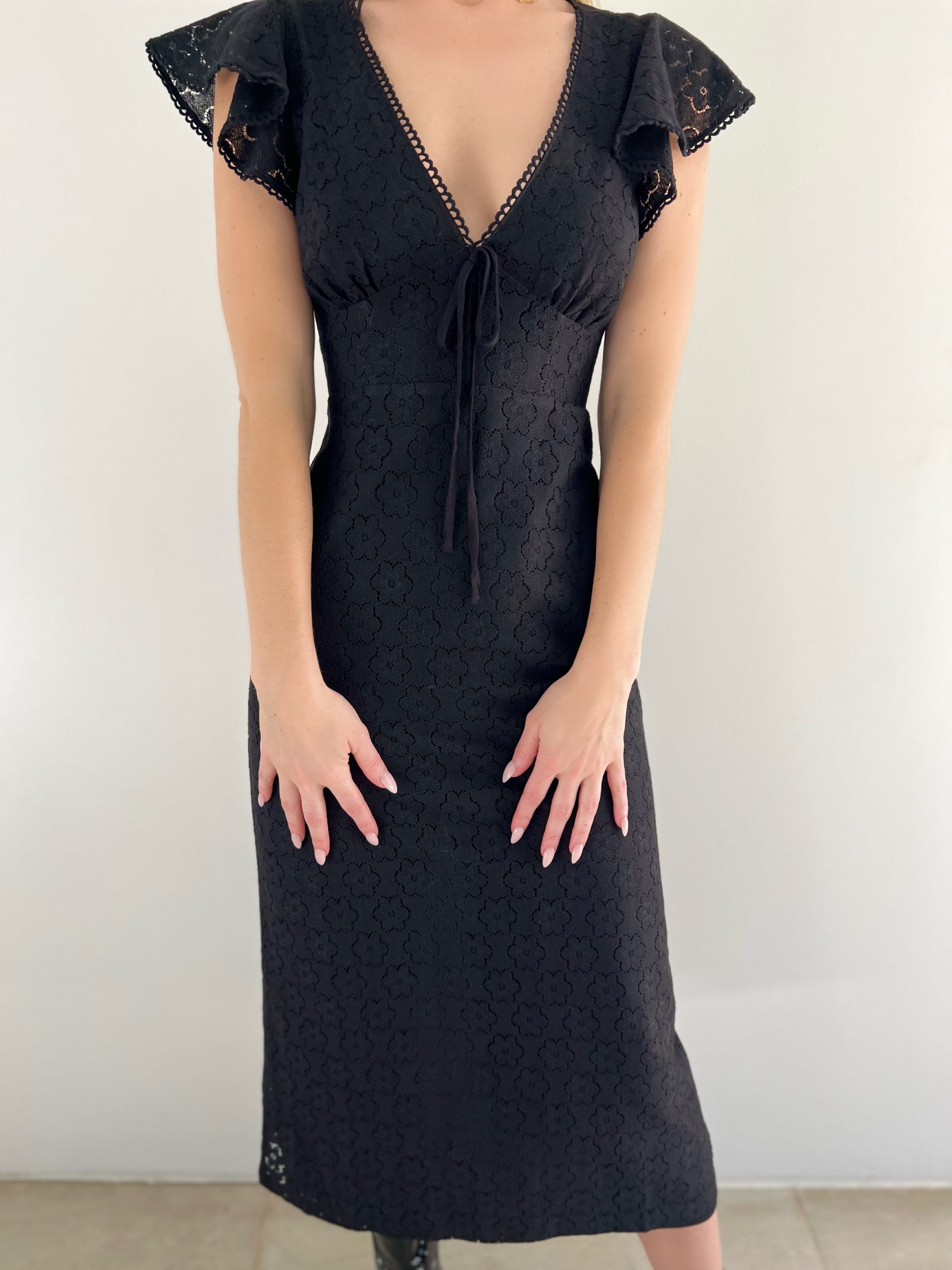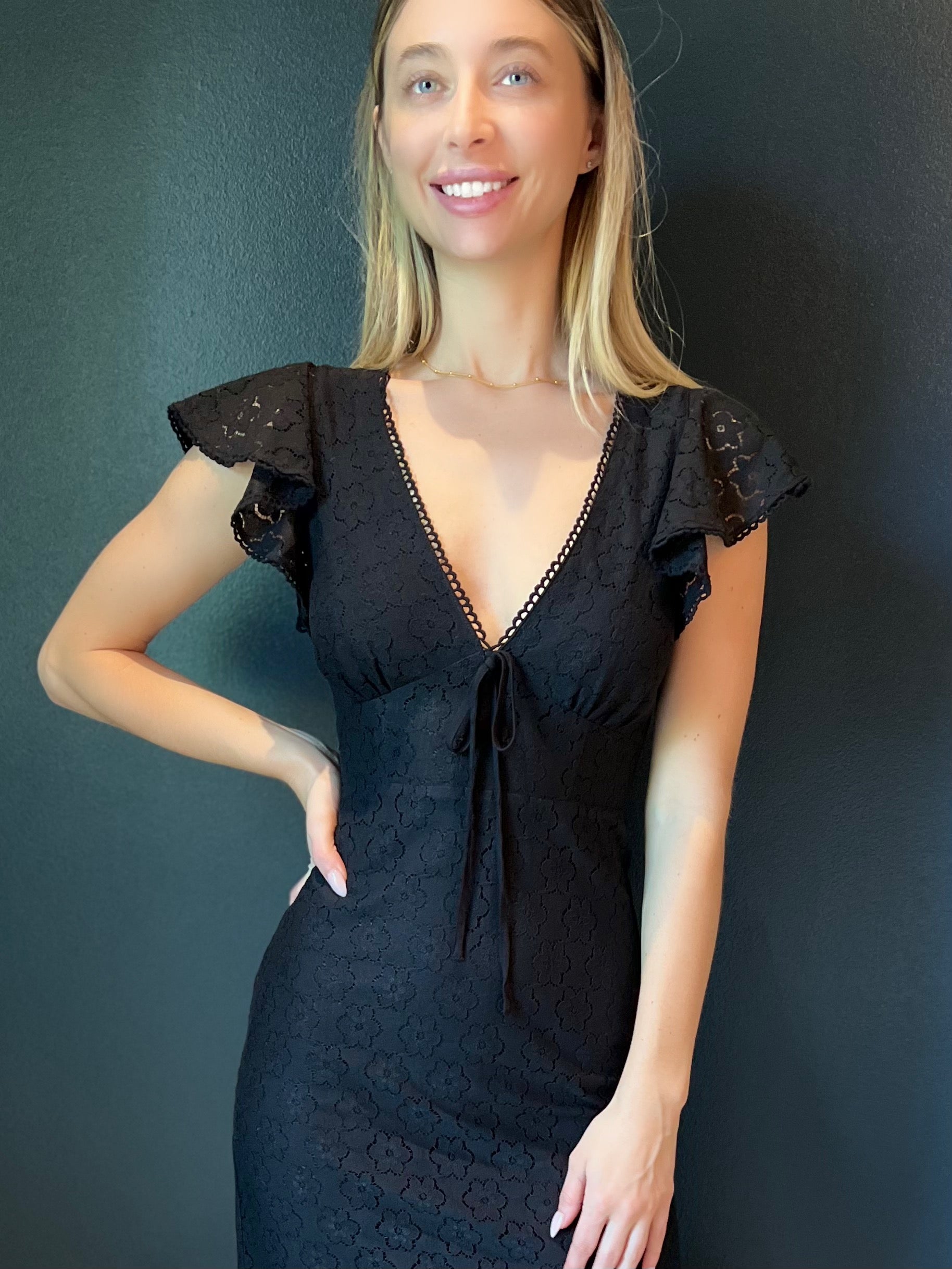 Make an unforgettable entrance in the Shadow Daisy Maxi Dress! Beautifully made with a romantic floral lace fabric, this dress features ruffled sleeves, a deep V-neckline with bow detail, and a figure-flattering high waist. Transform any outing into something memorable with this dress.