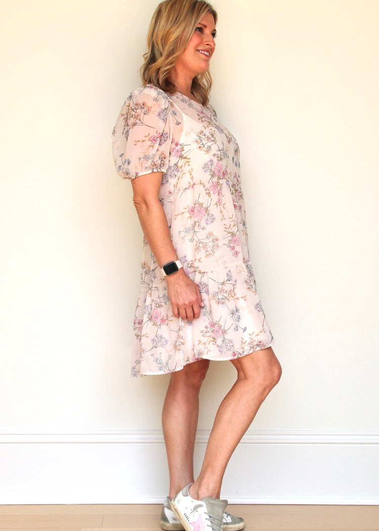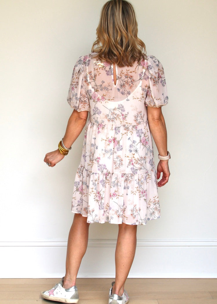 Our short sleeve Tyler Mini Dress features a crew neck and imported mesh poly chiffon fabric.